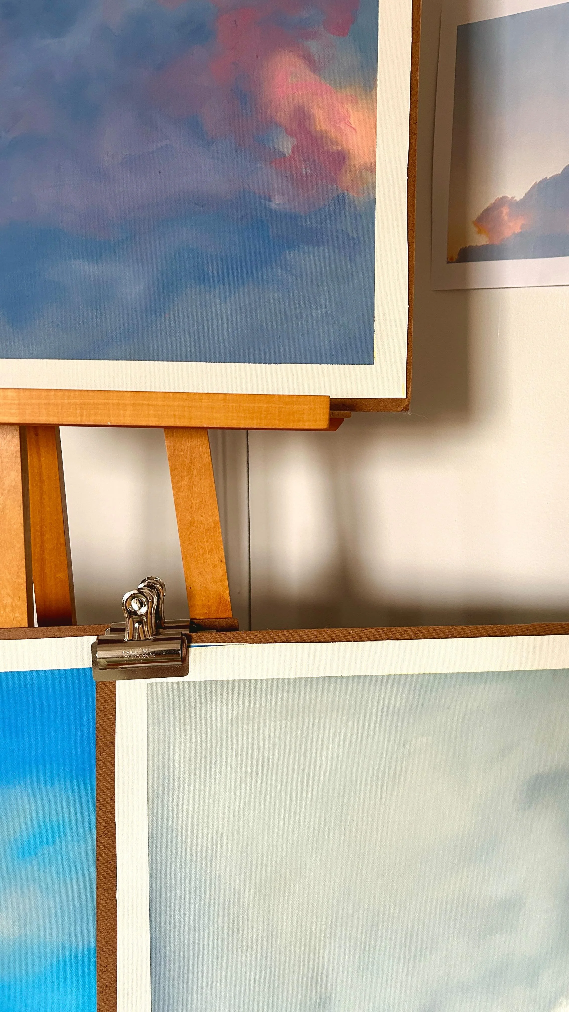My artistic practice explores the transcendent effect of the beauty in the routine of every day life. By painting the world around me in a new and unfamiliar way, it allows others to see the mundane as exciting and beautiful. The subject matter of my collages includes my personal everyday routines and environments.
